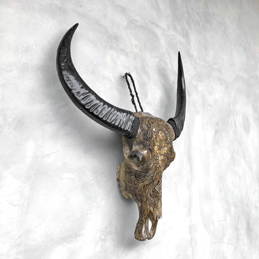Mythische Trisula | Handgeschnitzter Büffelschädel