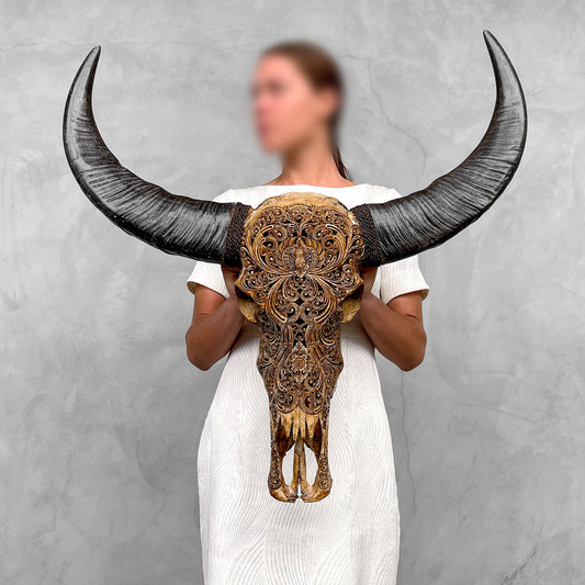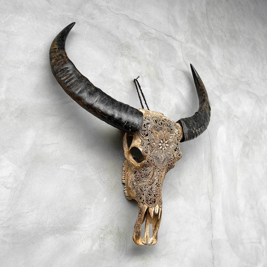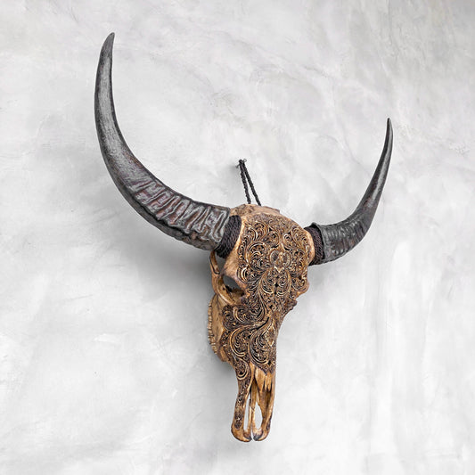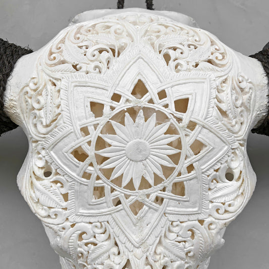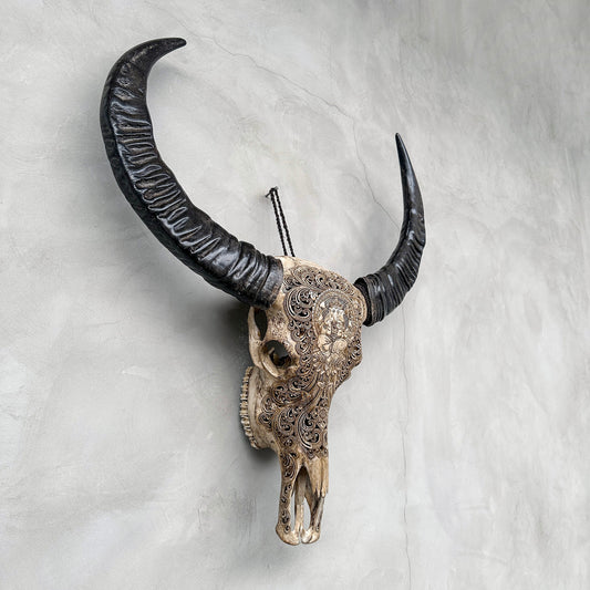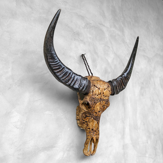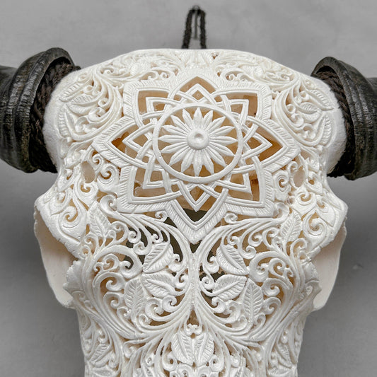 Harmonische Blüte | Handgeschnitzter Büffelschädel