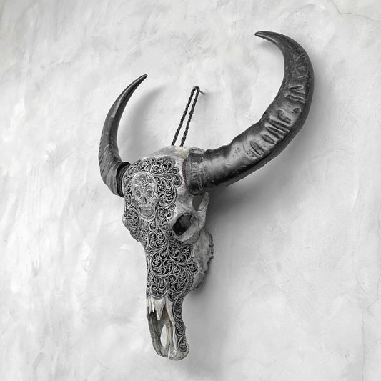 Dios de Los Muertos | Handgeschnitzter Büffelschädel