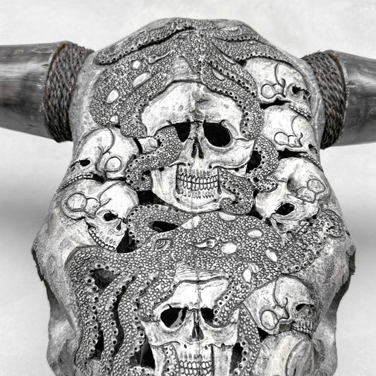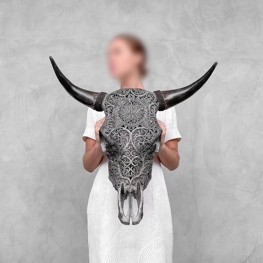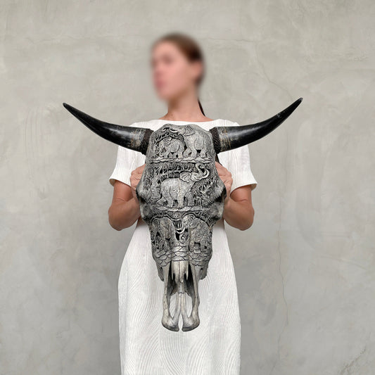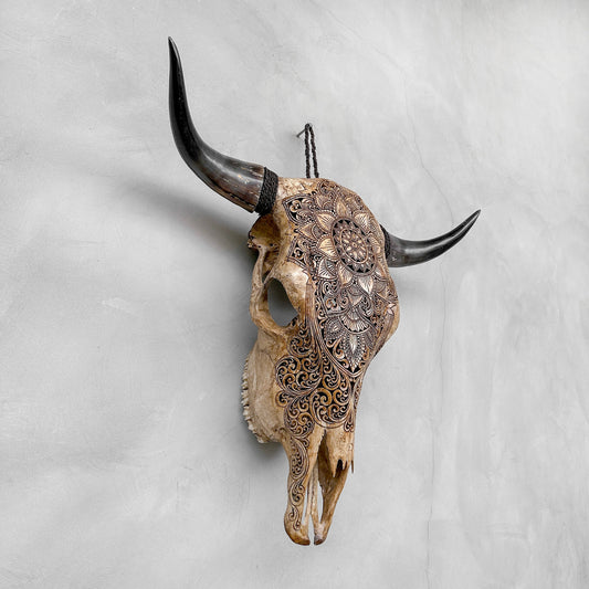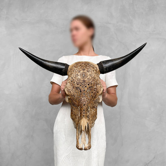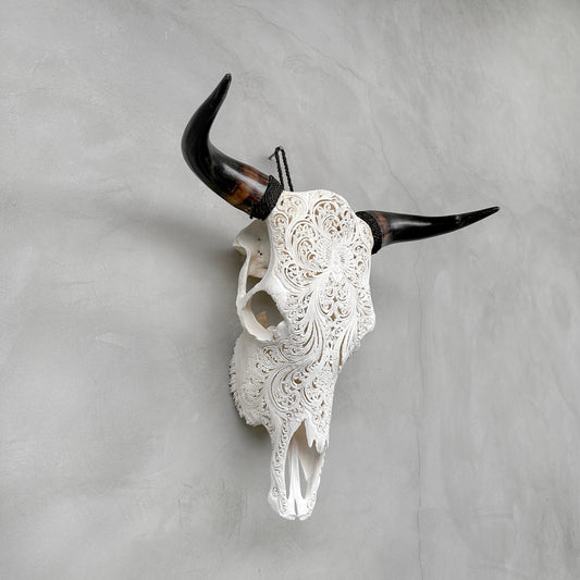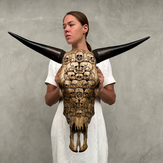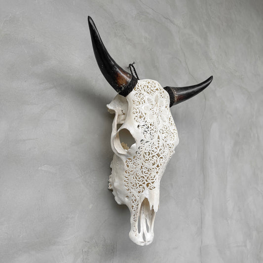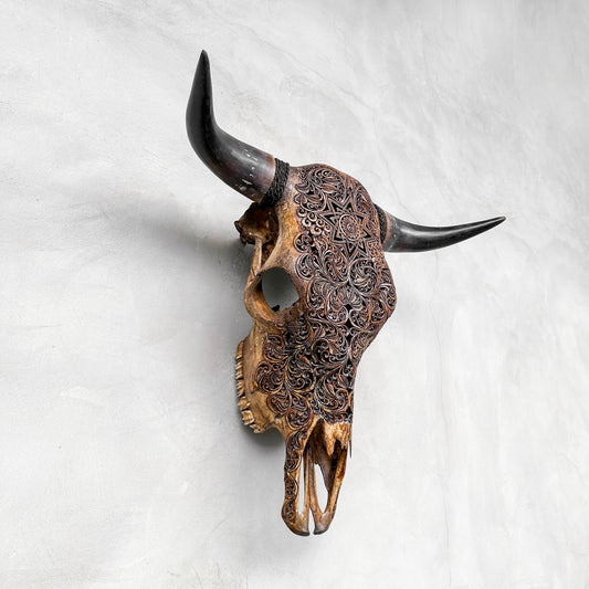 Nomadischer Nektar | Handgeschnitzter Stierschädel