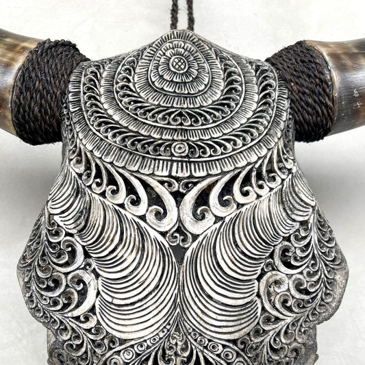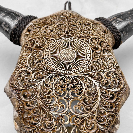 Nostalgisches Nirwana | Handgeschnitzter Stierschädel