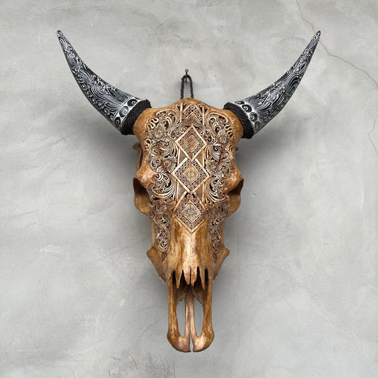 Diamant Ketupat | Handgeschnitzter Kuhschädel