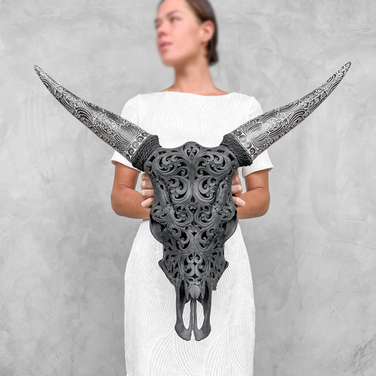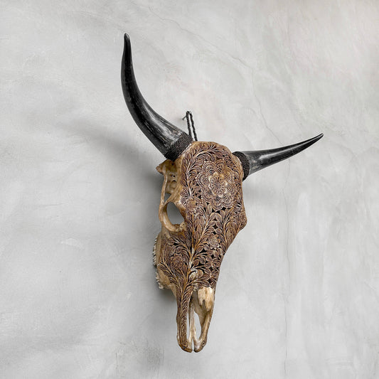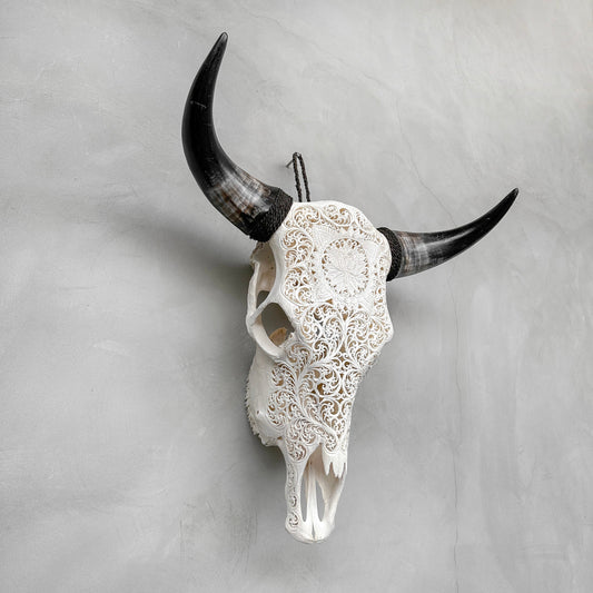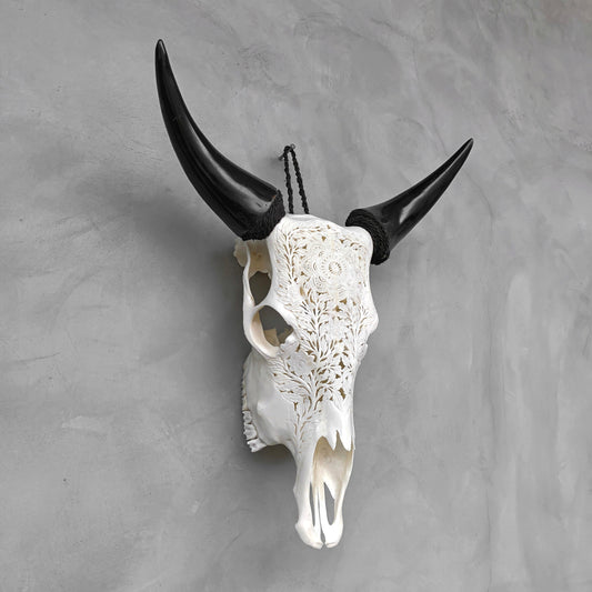 Zarte Knospe | Handgeschnitzter Kuhschädel