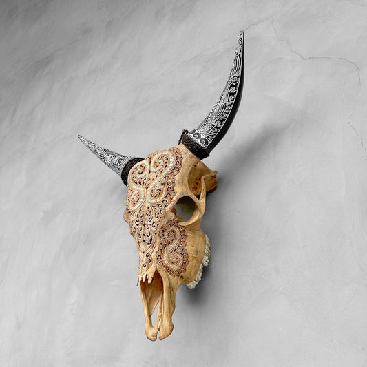 Mandala-Moohawk | Handgeschnitzter Kuhschädel