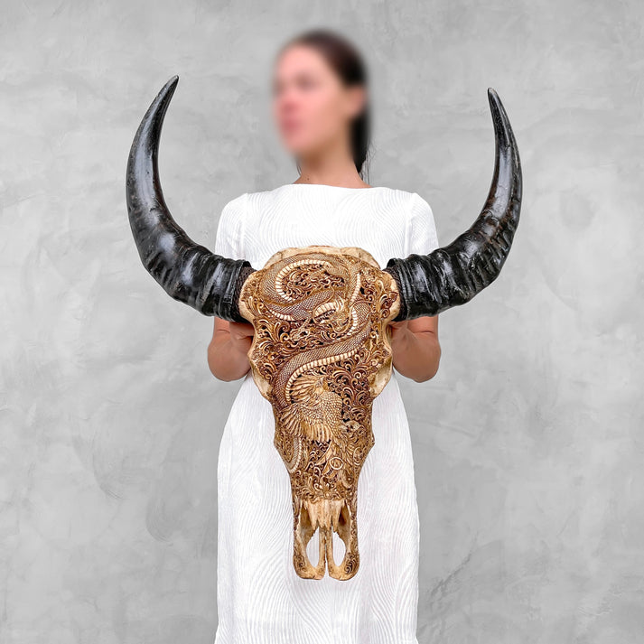 - Authentischer handgeschnitzter Büffelschädel