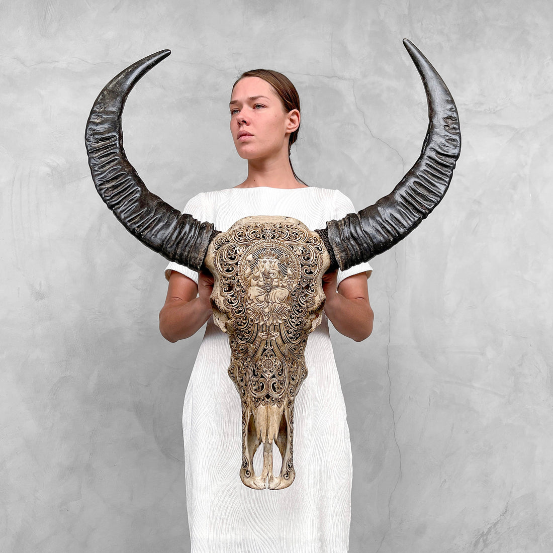 - Authentischer handgeschnitzter Büffelschädel