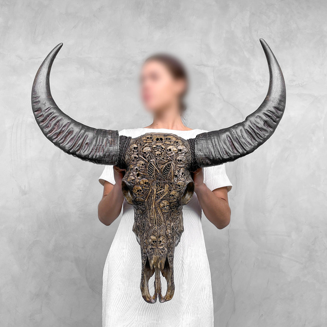 - Authentischer handgeschnitzter Büffelschädel