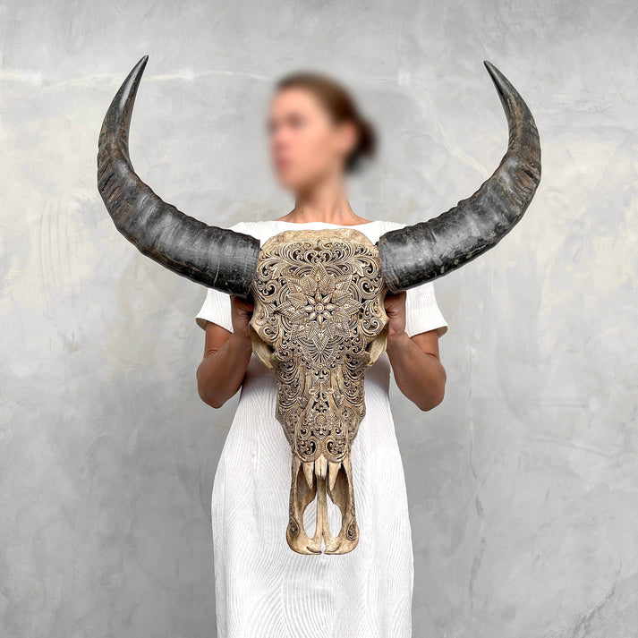 - Authentischer handgeschnitzter Büffelschädel